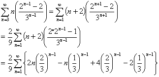 特に後者の(等差数列)×(等比数列)型の無限級数の知識が必要となりますから、
