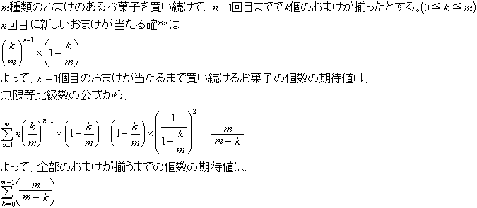 発想の転換…あるおまけが当たるまでの期待値を考える。